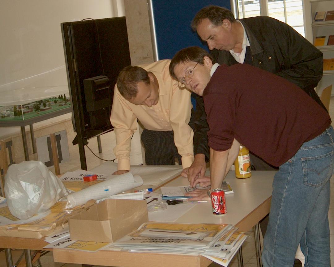 Preparing the signs to find the conference site |